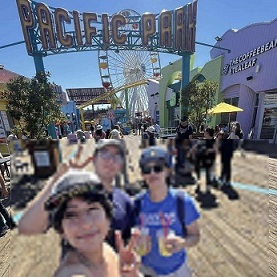 定番のサンタモニカピアにも連れて行きました。みんなとても喜んでくれて、ファネルケーキを食べたり、海沿いをドライブしたりと、楽しい時間を過ごしました。