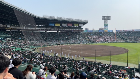 試合は準決勝の第一試合で残念ながら智弁学園に逆転負けをしてしまいましたが、独特の朝のグラウンドの空気とアルプス席からのブラスバンド・応援に感動しました。